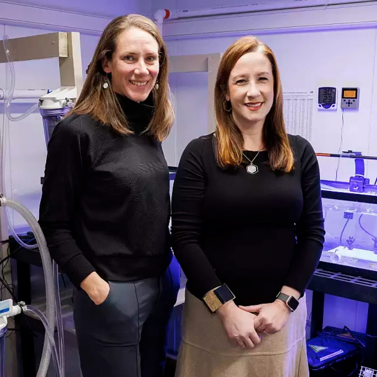 Indiana University's “coral corral” is maintained by associate professor of biology Julia van Kessel. She and her startup cofounder, teaching professor of chemistry Laura Brown, use the lab to teach IU students and the public about the challenges facing coral worldwide. Their innovative approach to student research fights aquatic pathogens posing threats to marine and human health.